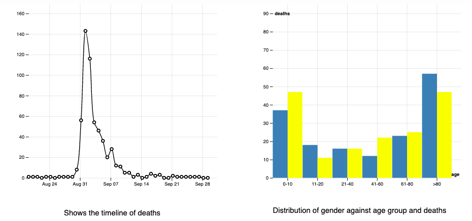 c.Interactive time series graph with number of deaths per each day during the epidemic period and cursor movement that reflects on map.